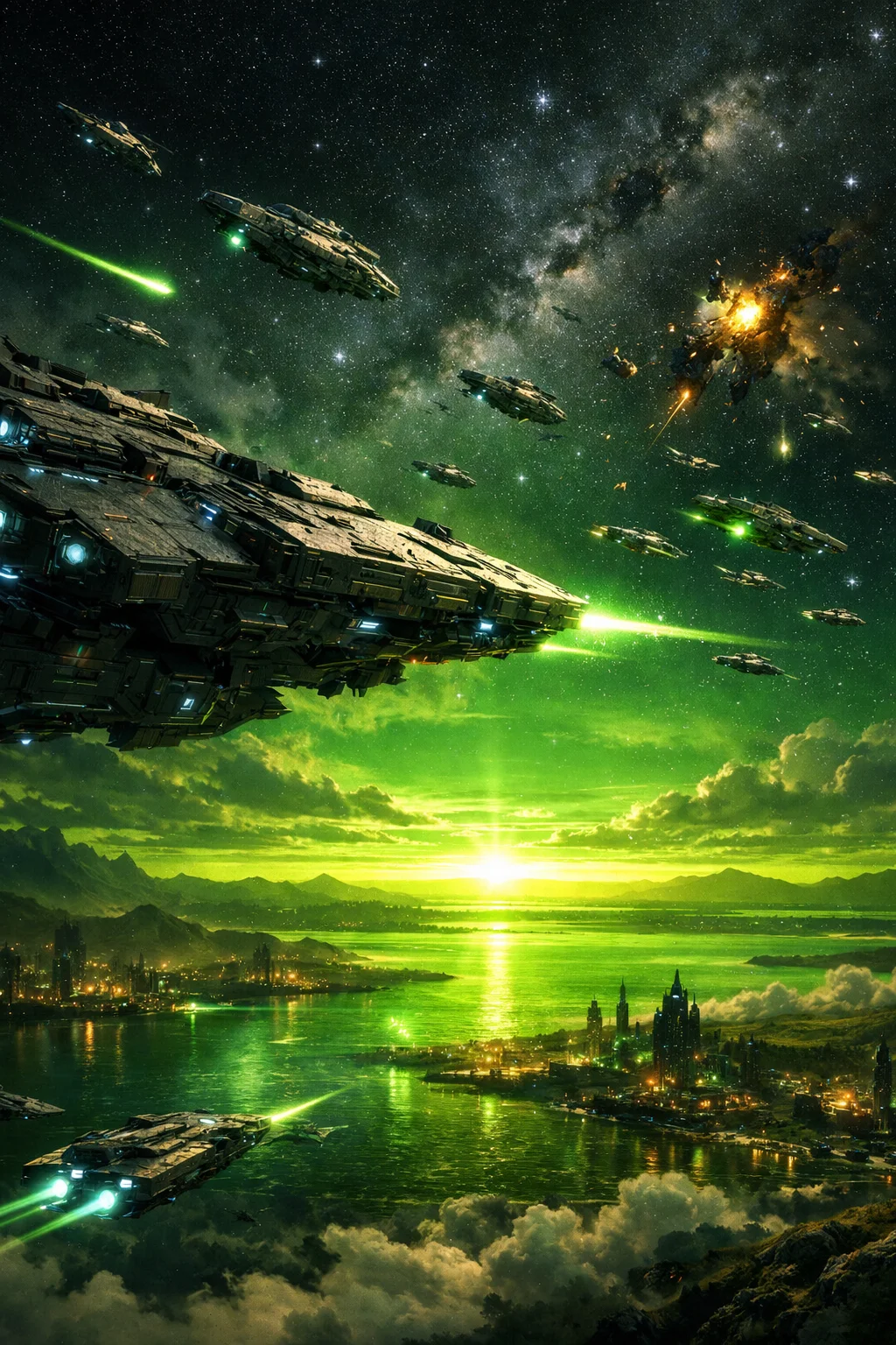 오리온자리에서 우리 함대와 적 함대의 대규모 전투 전이 있었다. 이번 작전엔 cruiser 3함대 destroyer 2함대가 참전했다. 대 승리였다. 이번 승리로 자신감이 붙은 우리 우주 사령부 1함대는 행성을 점령하러 나섰다. 소형 돌격함만 보냈으면 패전했을 전투였다. 이번 승리는 역시 무수한 노력으로 고학력을 발전시켜 디스트로이 전함을 개발할 수 있었기 때문이다.